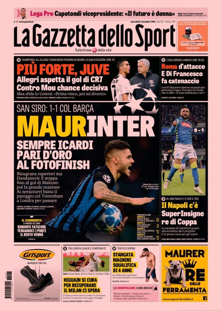 La redazione di Calciorosanero vi augura buona giornata con le prime pagine dei quotidiani sportivi di oggi