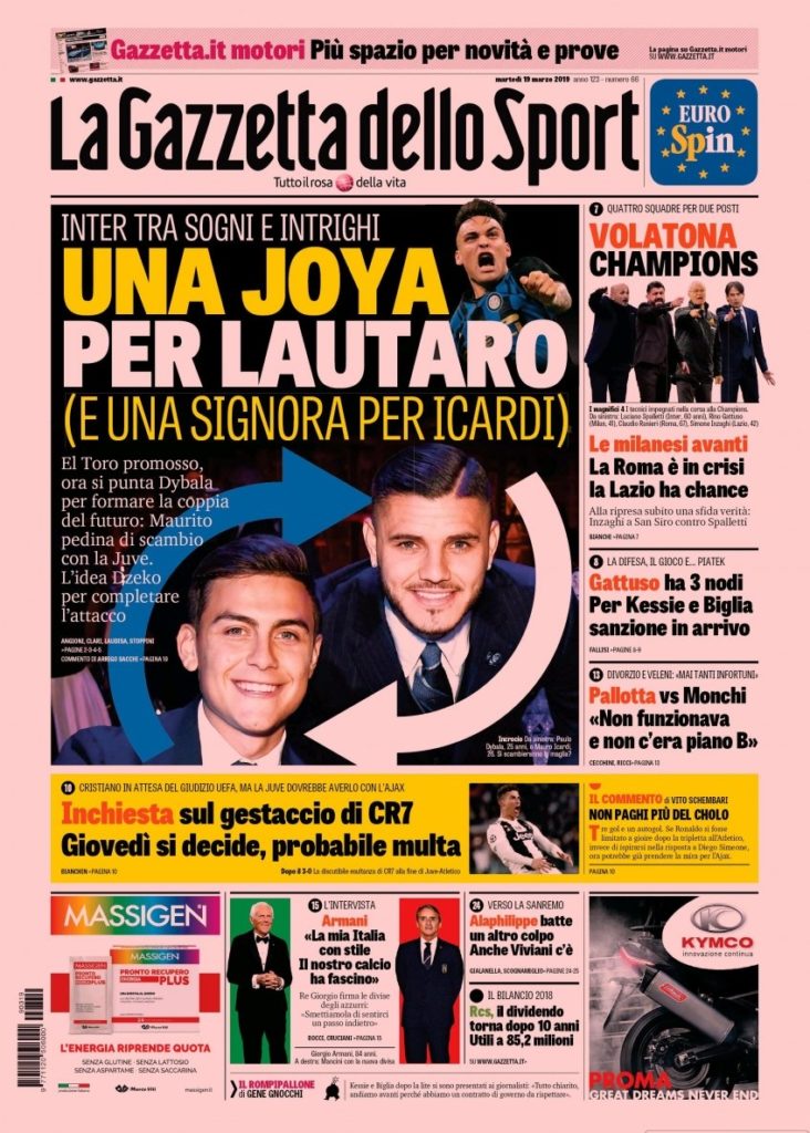 La nostra redazione vi augura buona giornata con le prime pagine dei quotidiani sportivi di oggi