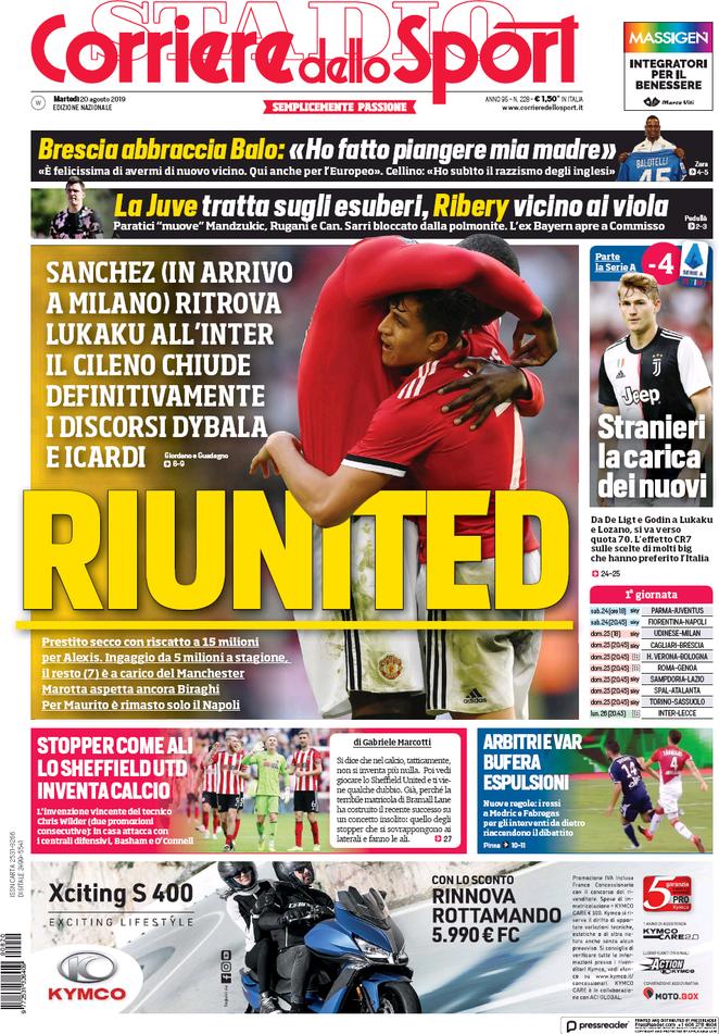Le prime pagine dei quotidiani sportivi del 20-08-2019