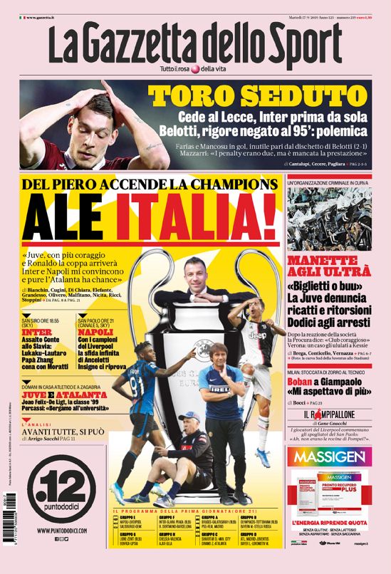 La nostra redazione vi augura buona giornata con le prime pagine dei quotidiani sportivi di oggi