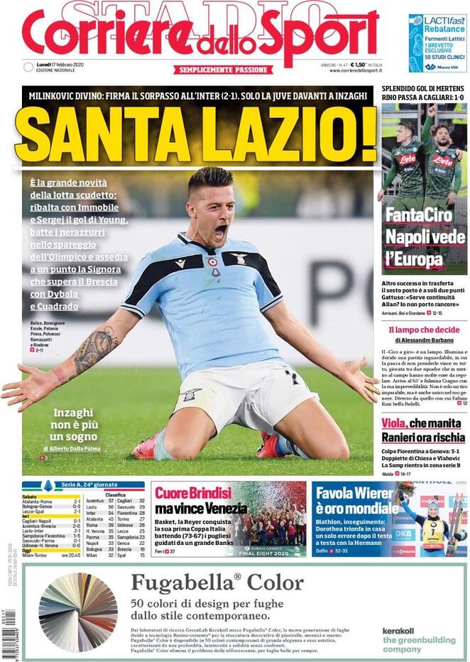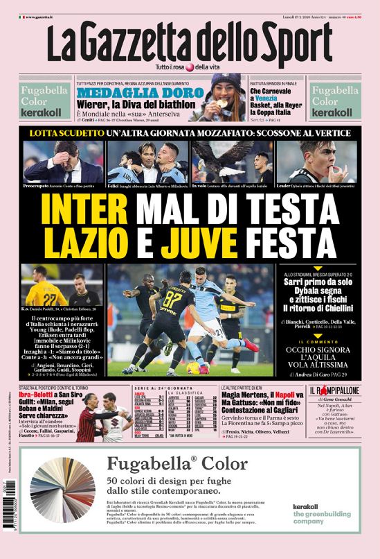Le prime pagine dei quotidiani sportivi del 17-02-2019