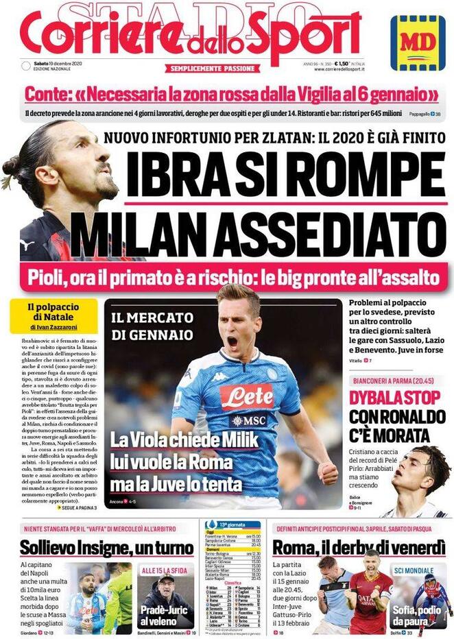 Le prime pagine dei quotidiani sportivi del 19-12-2020