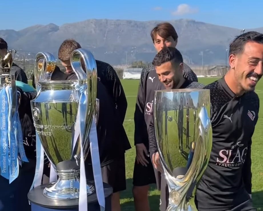Il Palermo con una storia sul suo profilo Instagram che mostrato la Premier League, la FA Cup, la Champions League, la Supercoppa e la Coppa del Mondo per Club sul molo di Mondello, poi a Torretta. Al Palermo City Football Academy il direttore generale e amministratore delegato rosanero Giovanni Gardini ha parlato alla squadra, poi giocatori e staff tecnico si sono avvicinati alle coppe. C’ĆØ anche chi ha trovato il modo di scherzare, chissĆ magari ipotizzando scenari futuri e macro obiettivi, ma tutti sanno che per sognare, come ripete sempre Corini, bisogna prima passare dai microobiettivi: primo fra tutti l’impegno di Cremona contro la Cremonese sabato alle 14.