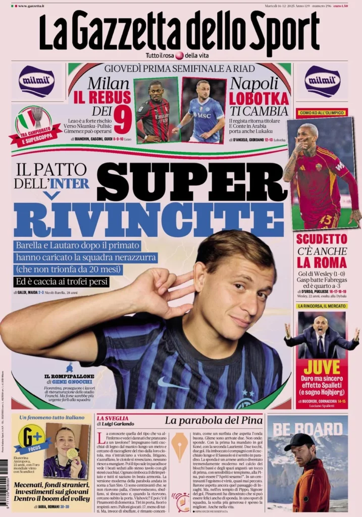 Queste le prime pagine dei maggiori quotidiani sportivi in edicola...