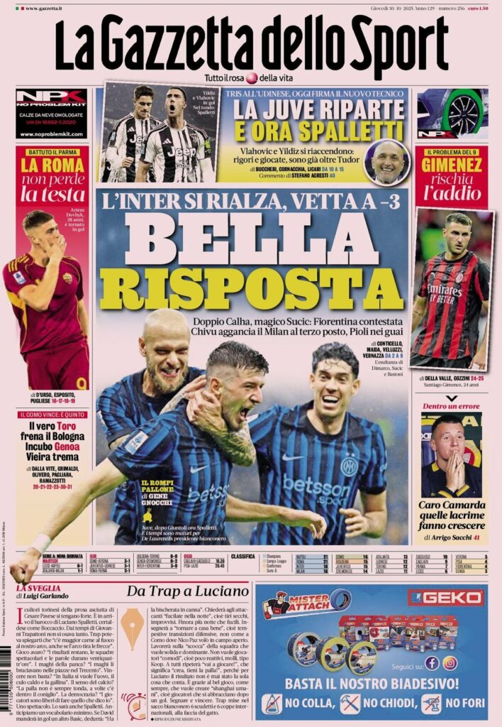 Queste le prime pagine dei maggiori quotidiani sportivi in edicola...