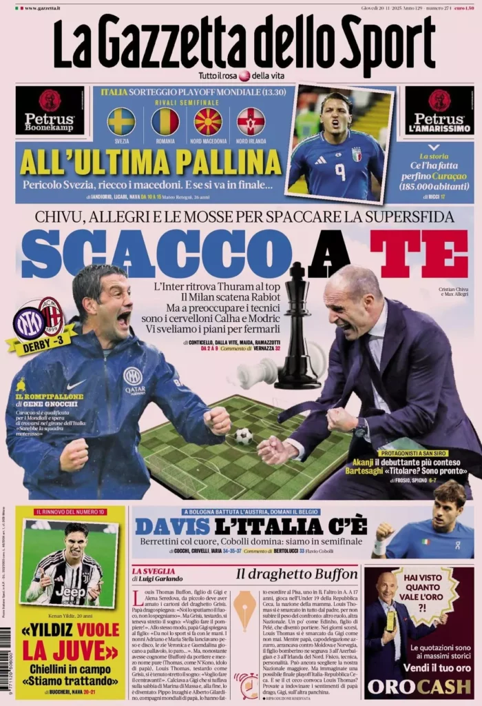 Queste le prime pagine dei maggiori quotidiani sportivi in edicola oggi...