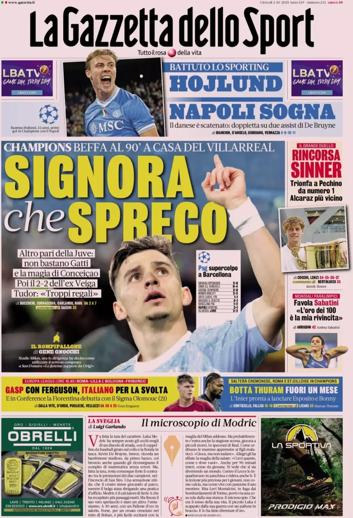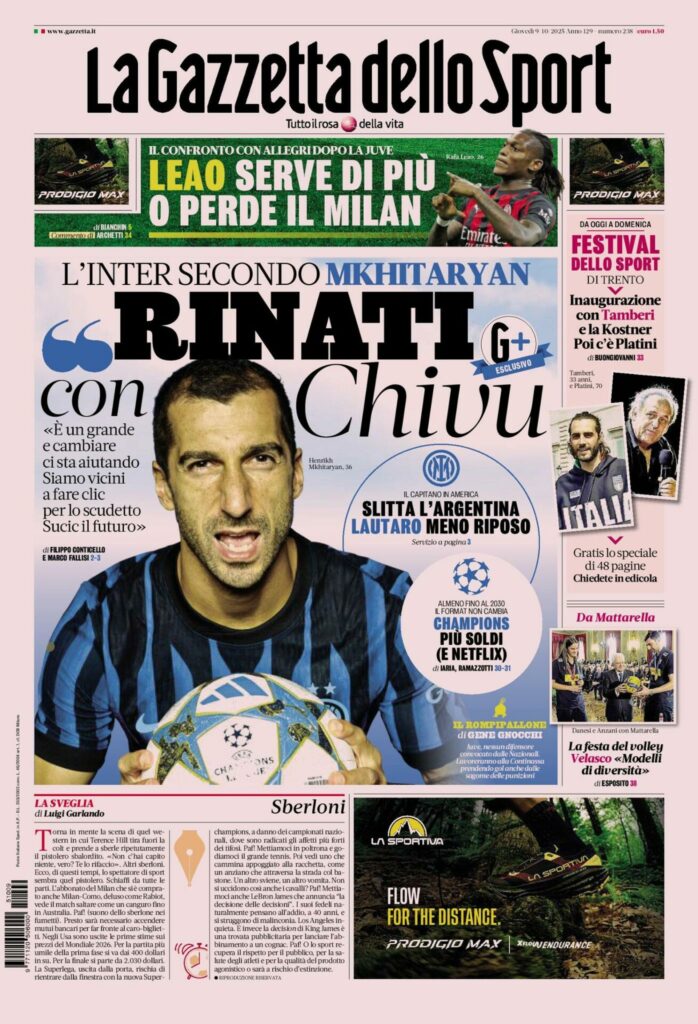 Queste le prime pagine dei maggiori quotidiani sportivi in edicola oggi...