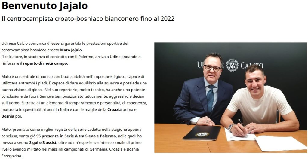 Con una nota sul sito ufficiale la societĆ friulana ha annunciato di avere completato il tesseramento del centrocampista croato naturalizzato...
