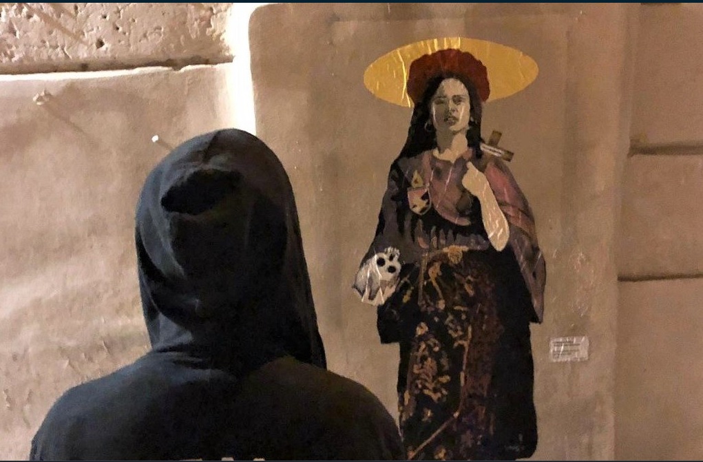 Una santuzza pop in piazza Giovanni Meli opera dello street artist palermitano, al secolo Salvatore Benintende L’artista Tvboy, street artist...